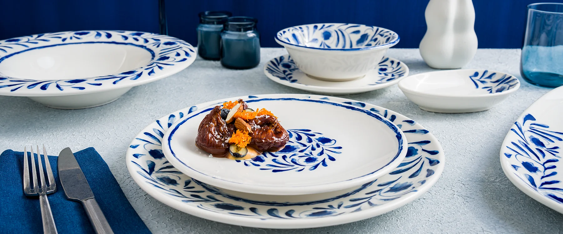Lavis Blue stands out with a design inspired by Mediterranean landscapes and cuisine. Its scratch- and thermal-shock–resistant, stackable forms save space and reduce operational costs; selected pieces are backed by a lifetime edge-chipping warranty.